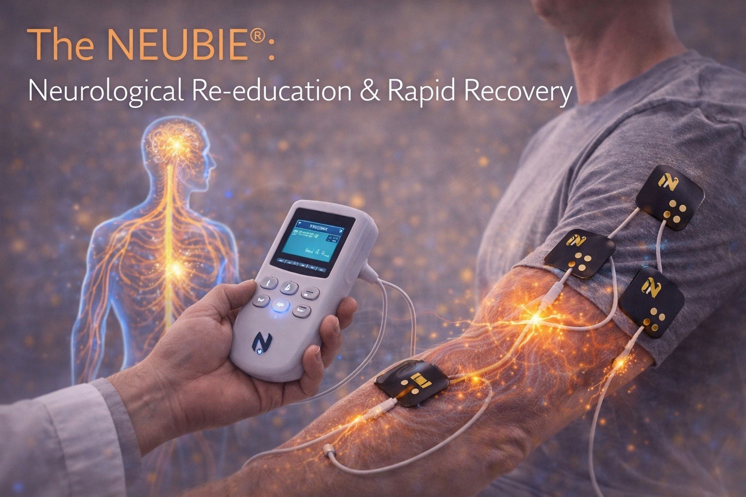 The NEUBIE® is a specialized Direct Current (DC) stimulation device that works with your body’s nervous system rather than against it. Most traditional stimulation devices use Alternating Current (AC), which can cause muscles to “guard.” The NEUBIE’s unique DC waveform allows for deep neurological change without the stress response.